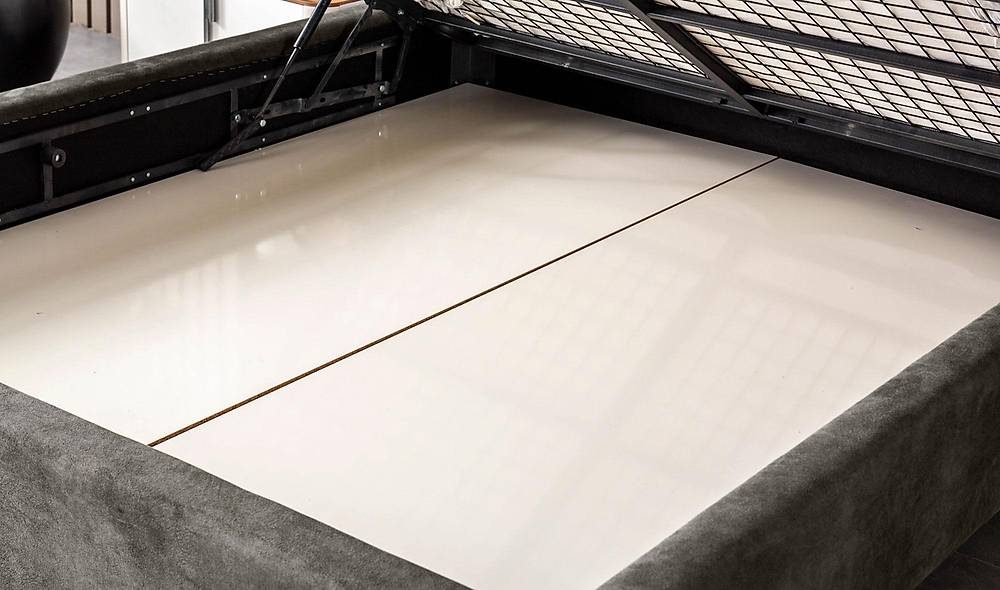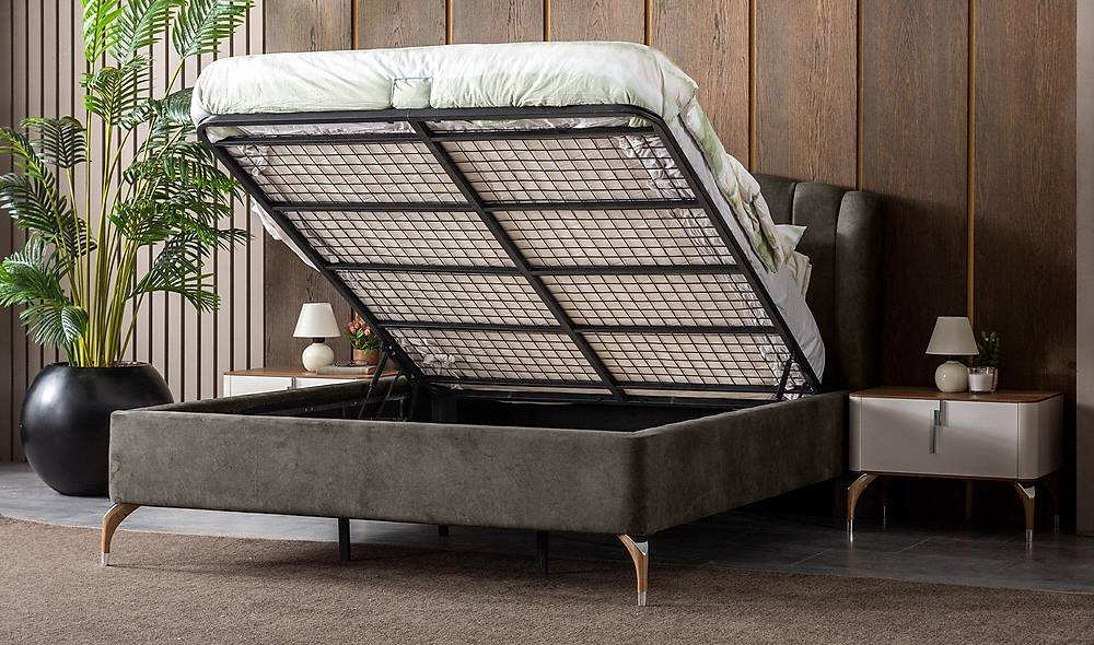 - Laci atau Mekanisme Angkat (Lift-Up Storage): Bagian bawah rangka ranjang biasanya dilengkapi dengan laci penyimpanan tersembunyi atau mekanisme hidrolik lift-up. Fitur ini sangat berharga untuk menyimpan seprai, bantal, selimut, atau barang musiman, memaksimalkan penggunaan ruang lantai.