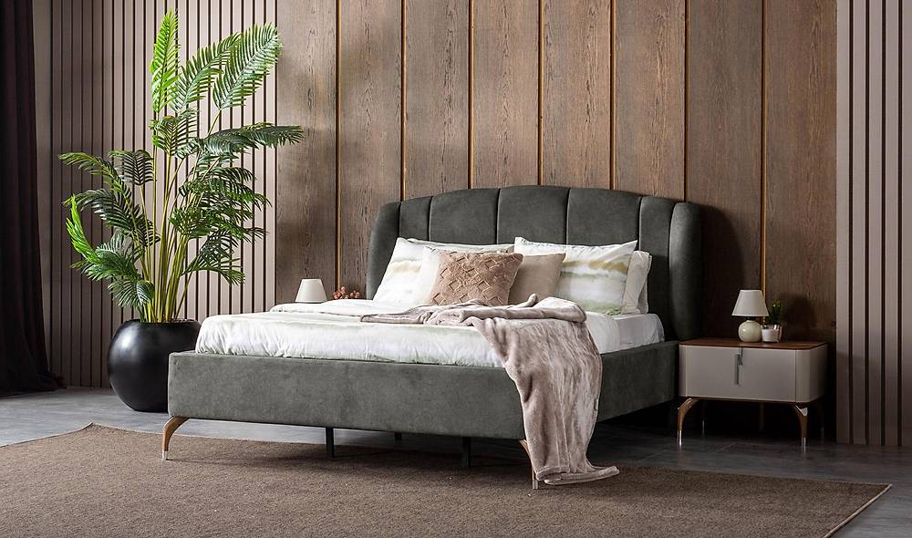 - Warna Netral: Palet warna netral bedframe ini menjadikannya kanvas sempurna untuk dekorasi tambahan, baik itu nightstand berlapis kaca mengkilap (seperti yang terlihat) maupun karpet bertekstur.