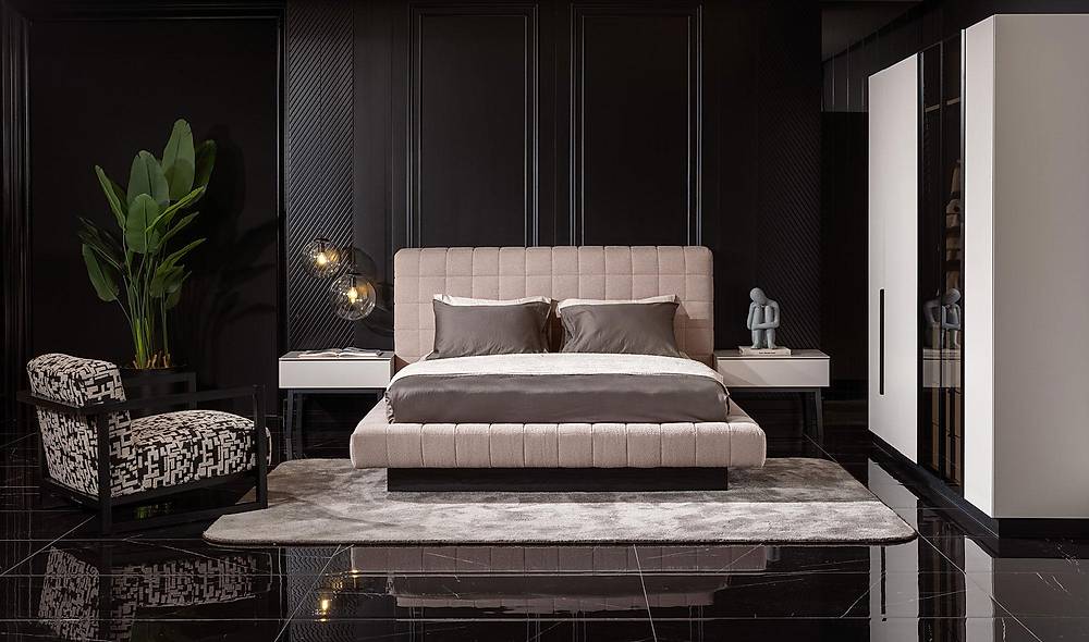Warna netralnya juga memudahkan Anda untuk bereksperimen dengan berbagai pilihan seprai, bantal, dan dekorasi kamar tidur. Tempat tidur ini cocok untuk menjadi pusat perhatian yang mewah dan nyaman di kamar tidur utama.