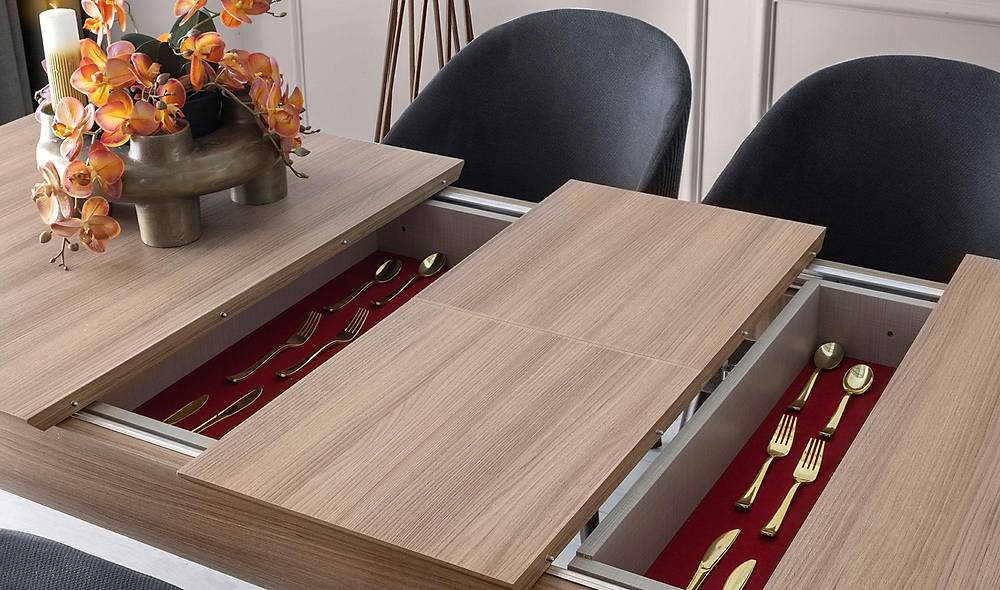 - Fungsionalitas Tinggi: Meja ini dapat diperpanjang untuk menghemat ruang saat tidak digunakan dan menampung lebih banyak orang saat dibutuhkan.