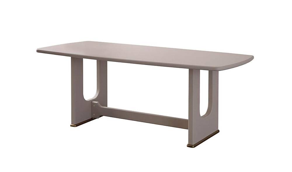 - Basis Pedestal yang Kokoh: Meja ditopang oleh basis tebal berbentuk pilar, seringkali dalam warna monokrom (off-white atau abu-abu muda). Basis yang solid ini memberikan stabilitas superior dan memperkuat tampilan modern dan substansial.