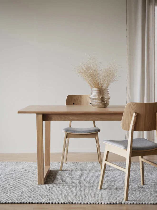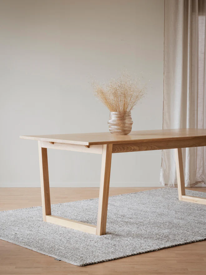 Namu Dining Table hadir dengan desain minimalis bernuansa natural yang memadukan garis-garis bersih dan konstruksi kokoh dari kayu solid. Permukaannya yang halus serta kaki meja berbentuk rangka terbuka memberikan sentuhan modern yang ringan namun tetap stabil. Warnanya yang cerah menghadirkan kesan hangat dan menenangkan di dalam ruangan.