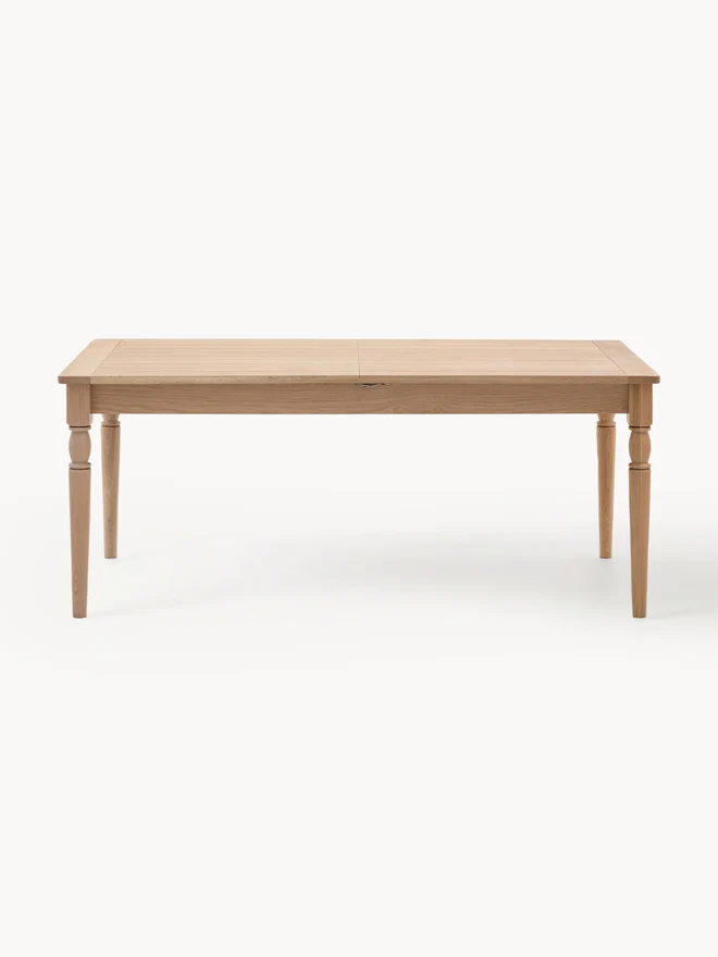 Nilo Dining Table menghadirkan desain klasik modern melalui permukaan panel kayu yang rapi. Selain itu, kaki berukirnya memberi sentuhan karakter yang lembut. Kemudian, struktur kayunya berdiri kokoh untuk penggunaan harian. Selanjutnya, detail halusnya menambah kesan refined pada seluruh tampilan meja.