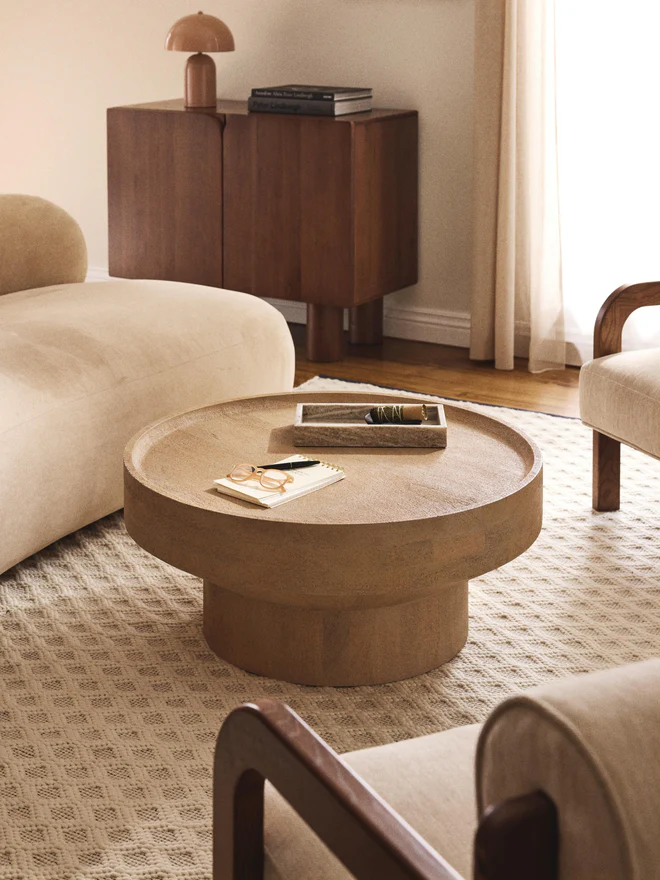 Selain itu, Noira Coffee Table memiliki permukaan lebar yang ideal untuk menata dekorasi, buku, atau nampan minuman. Finishing natural memberikan tampilan lembut dan elegan, membuat meja ini mudah berpadu dengan gaya interior modern, skandinavia, atau japandi. Dengan detail halus pada tepiannya, meja ini menambah sentuhan organik yang menenangkan dalam ruangan.