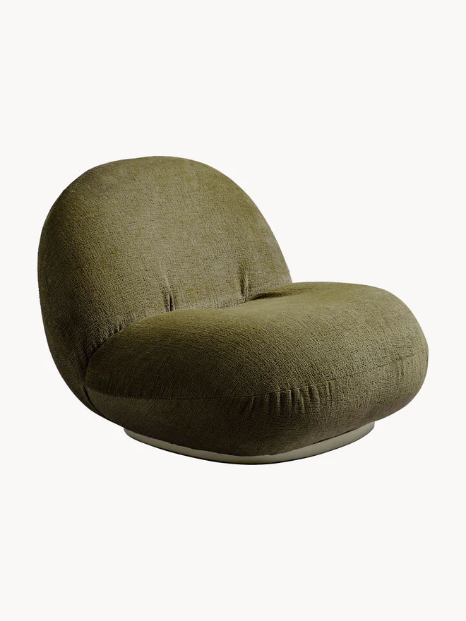 Samaya Lounge Chair menghadirkan bentuk membulat yang lembut dan modern. Selain itu, kursi ini memakai kain tekstur warna hijau zaitun yang hangat. Kemudian, busa tebal pada dudukan memberi rasa empuk saat Anda bersandar. Lebih lanjut, sandaran lebar mengikuti kontur tubuh agar rileks. Akhirnya, alas bundar rendah menjaga kursi stabil di banyak permukaan.