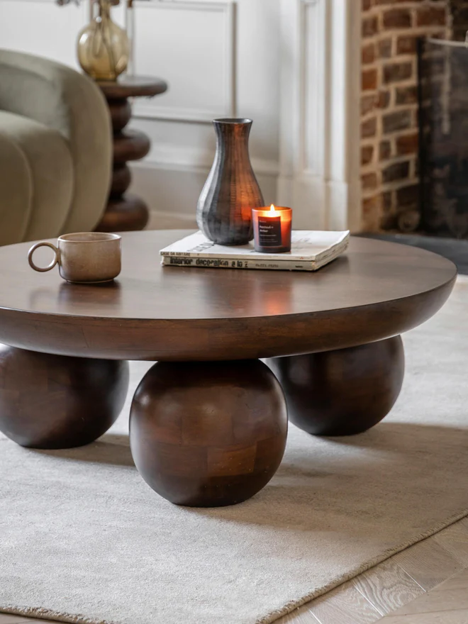 Silva Coffee Table adalah karya seni fungsional yang menggabungkan kekuatan kayu jati solid dengan desain skulptural yang menawan. Terbuat sepenuhnya dari kayu jati alami berkualitas tinggi, meja ini menampilkan bentuk bulat besar dengan empat kaki berbentuk bola yang memberikan karakter unik dan estetika berani. Setiap detail dibuat dengan presisi, menonjolkan keindahan serat kayu yang alami dan warna coklat tua yang elegan.