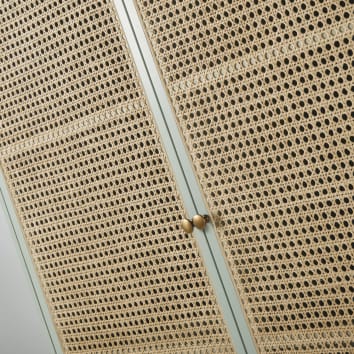 Silvara Wardrobe menampilkan rangka kayu solid warna natural yang hangat. Selain itu, pintu rotan anyam memberi tekstur airy yang estetik. Kemudian, handle bulat warna emas menambah aksen manis dan rapi. Lebih lanjut, bodi tinggi membuat siluet lemari terlihat ramping. Akhirnya, kaki kokoh menjaga lemari stabil untuk pemakaian harian.
