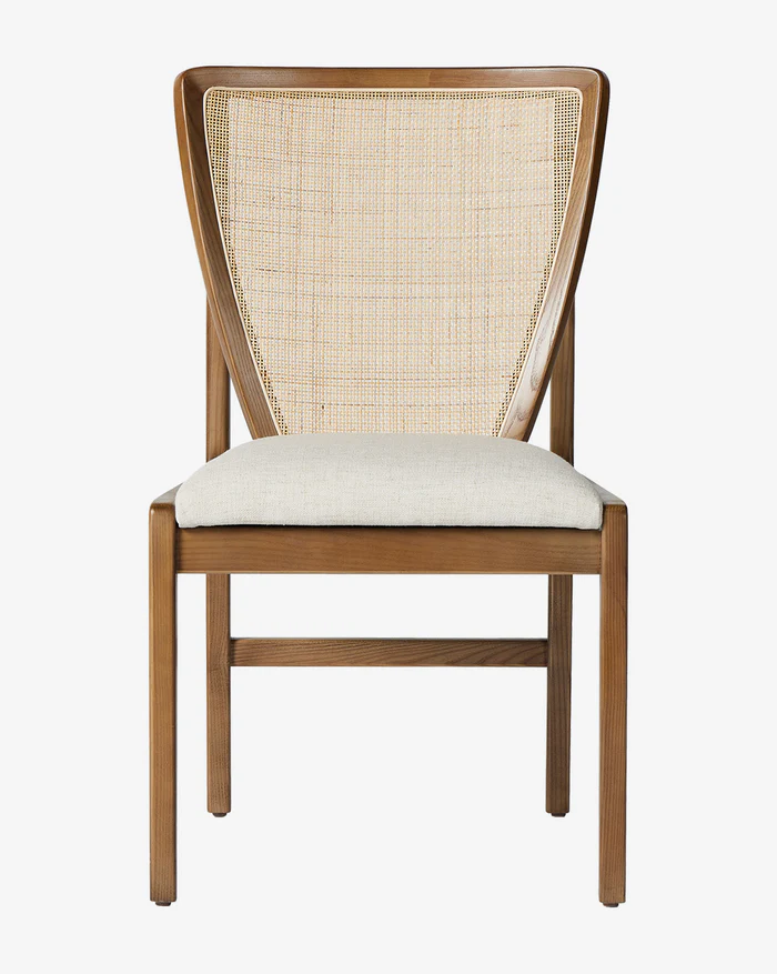 Suvitha Dining Chair menampilkan keindahan desain klasik yang berpadu dengan sentuhan modern. Terbuat dari kayu solid dengan warna natural hangat, kursi ini memiliki sandaran berbentuk V dengan hiasan anyaman rotan halus — menciptakan keseimbangan sempurna antara keanggunan dan kesederhanaan. Dudukan empuk berlapis kain lembut berwarna krem memberikan nuansa nyaman sekaligus elegan, ideal untuk ruang makan bergaya natural, skandinavia, maupun mid-century modern.