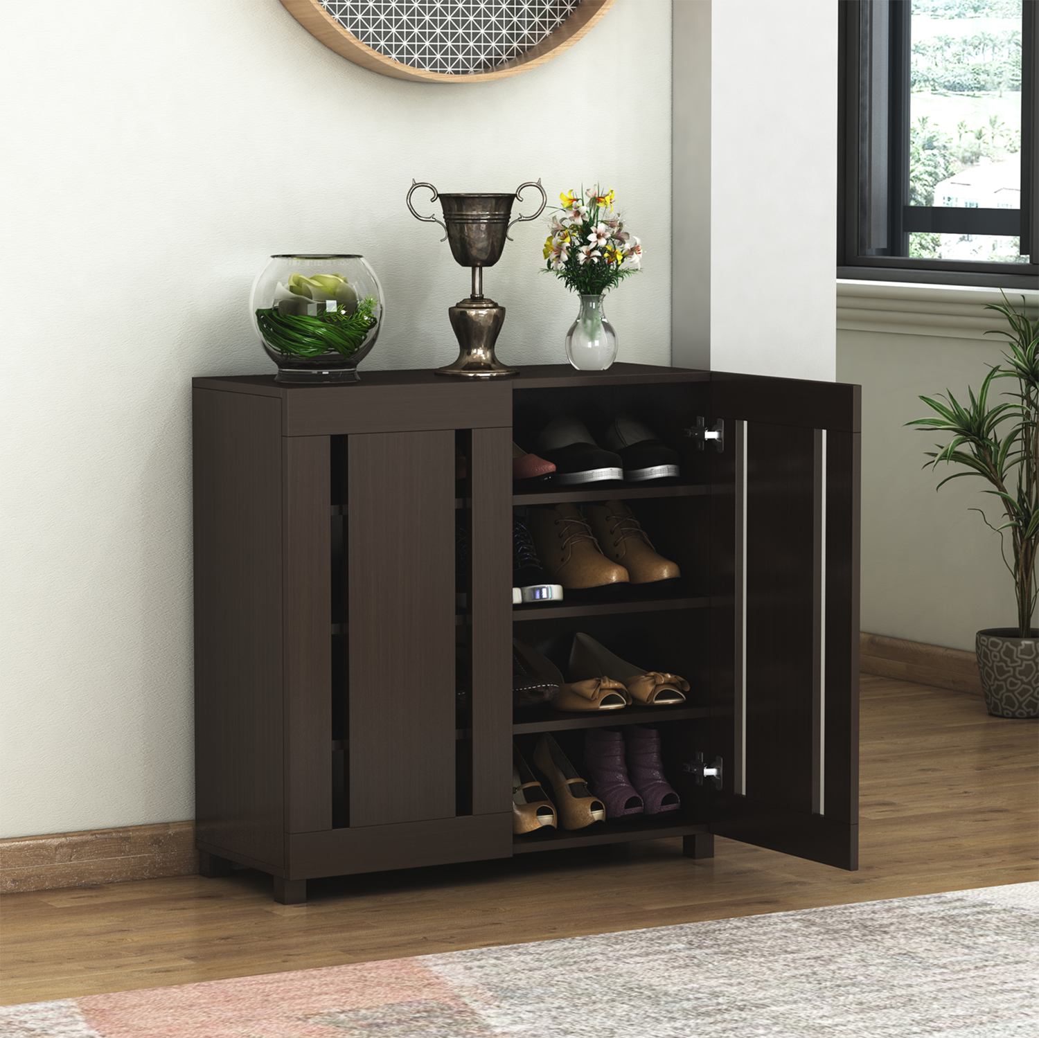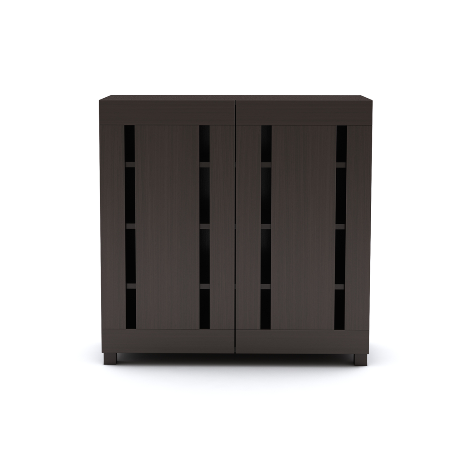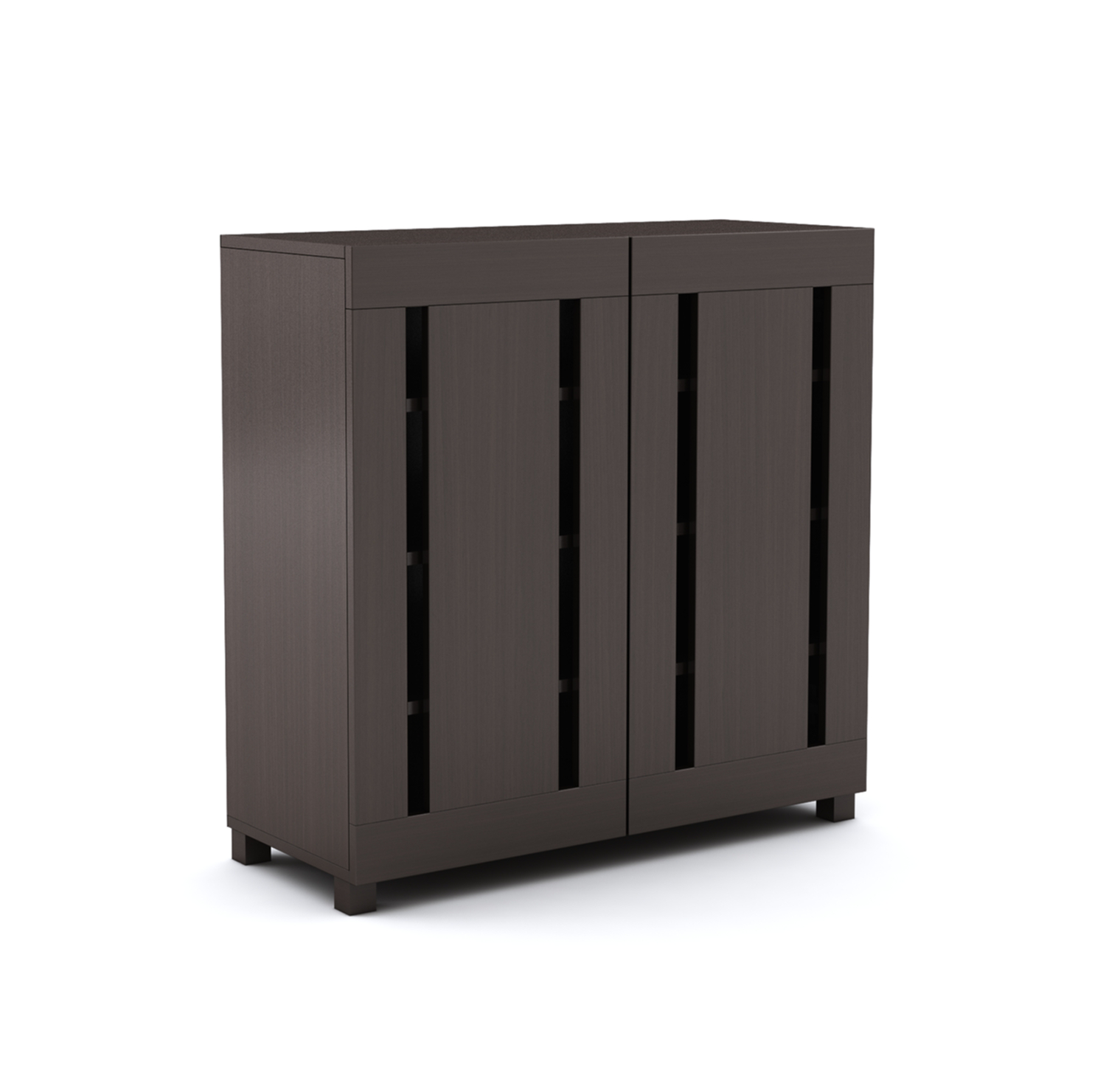Svara Rack Shoe menghadirkan kabinet sepatu warna cokelat gelap dengan aksen panel vertikal modern. Produk ini memiliki dua pintu rapi, rak dalam bertingkat, serta bodi kokoh yang tetap terlihat elegan. Selain itu, tekstur halus dan desain ramping membuatnya mudah ditempatkan di area masuk rumah.