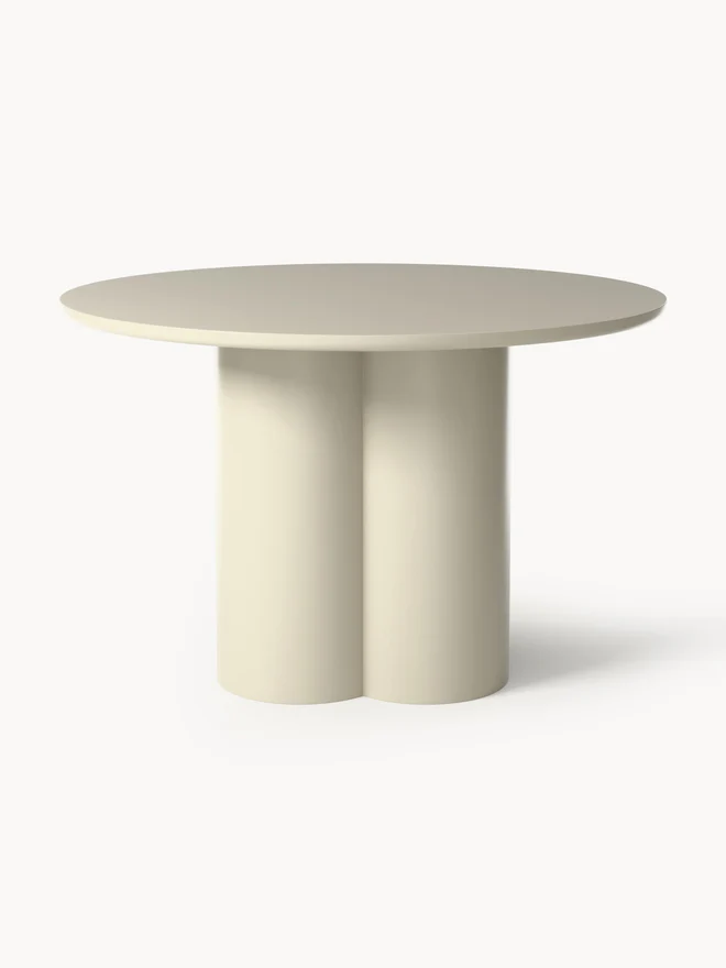 Tiyasya Dining Table menghadirkan desain modern minimalis dengan struktur kaki berbentuk silinder yang tampak artistik sekaligus stabil. Dengan tampilan serba krem yang lembut, meja ini memberikan kesan bersih dan elegan, sementara bentuknya yang bulat membuat tampilan ruang makan terasa lebih harmonis. Selain itu, permukaannya yang halus menciptakan nuansa premium yang sangat cocok untuk menghadirkan sentuhan kontemporer pada interior Anda.