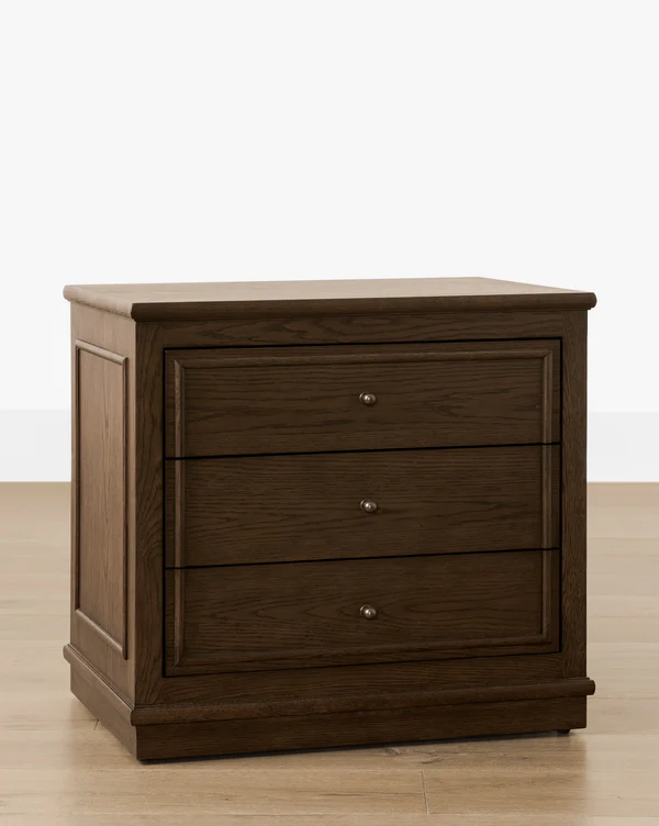 Valmora Nightstand menghadirkan estetika klasik yang hangat melalui konstruksi kayu solid bernuansa cokelat gelap yang kaya. Dengan siluet tebal dan detail bingkai panel yang elegan, produk ini menawarkan nuansa timeless yang langsung memperkaya tampilan kamar tidur. Selain itu, desainnya yang proporsional menghadirkan karakter mewah tanpa terlihat berlebihan, menjadikannya pilihan sempurna untuk interior klasik maupun transitional.