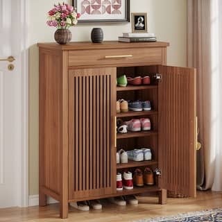 Vanya Rack Shoe menghadirkan kabinet sepatu elegan dengan material kayu berkualitas tinggi. Desain berpintu bilah vertikal memberi tampilan mewah dan rapi. Kabinet ini menyediakan banyak rak kokoh untuk berbagai ukuran sepatu. Laci atas menawarkan ruang ekstra untuk aksesoris kecil dan barang harian. Selain itu, finishing cokelat natural membuat tampilannya semakin hangat dan modern.